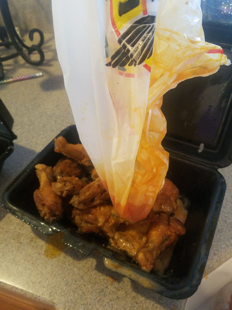 Fresh chicken, cheese, tomatoes, WTG hot sauce, and bleu cheese. 1103 calories.